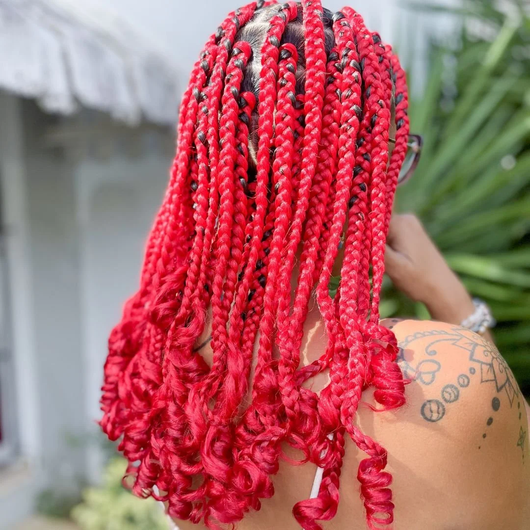 Together with cornrows, box braids are among the most chosen hairstyles all year long for tourists and locals alike. These braids come in different shapes and sizes, ranging from small to jumbo, with or without extensions. These different types all have in common that we create them by parting the hair into square sections (or ‘boxes’).